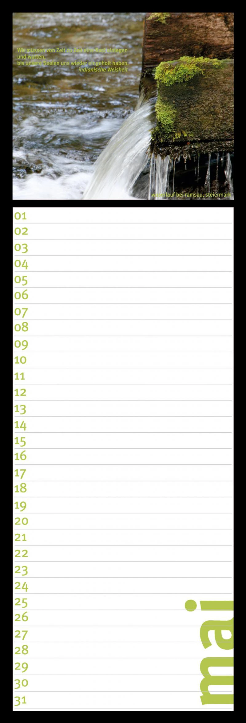 Und das für immer - ab jetzt! Durch die praktische Spiralbindung schlagen Sie das vergangene Monatsblatt einfach um und sehen auf einen Blick, was im aktuellen Monat wichtig ist.